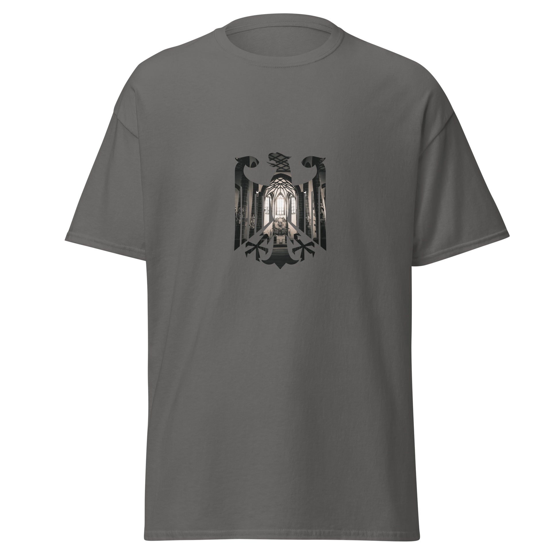 Our German eagle tee is the ultimate wardrobe essential. The eagle silhouette features the Liebfrauen Church in Frankfurt. Its relaxed fit guarantees a comfortable fit all day. Please refer to the size chart for unisex sizes.