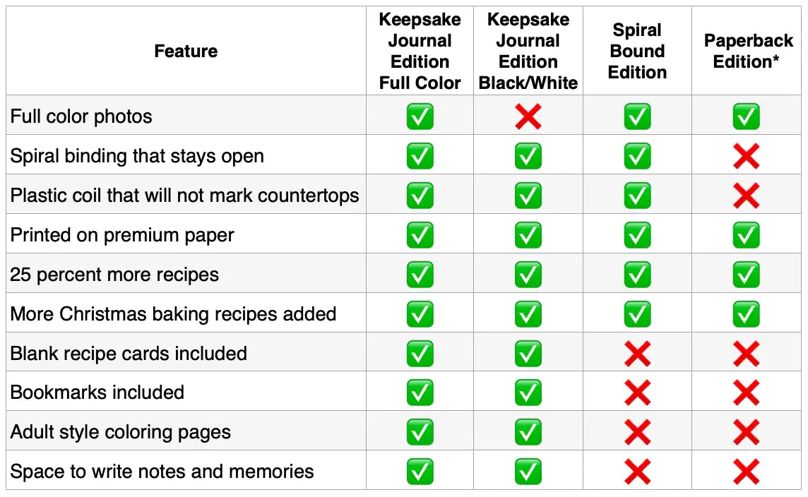 A Full-Color Keepsake Journal Edition is available with the same recipes and added features that let you personalize the book with blank recipe cards to add your own favorites, bookmarks for tracking notes, memory pages, and coloring pages with baking sayings to frame as posters.
